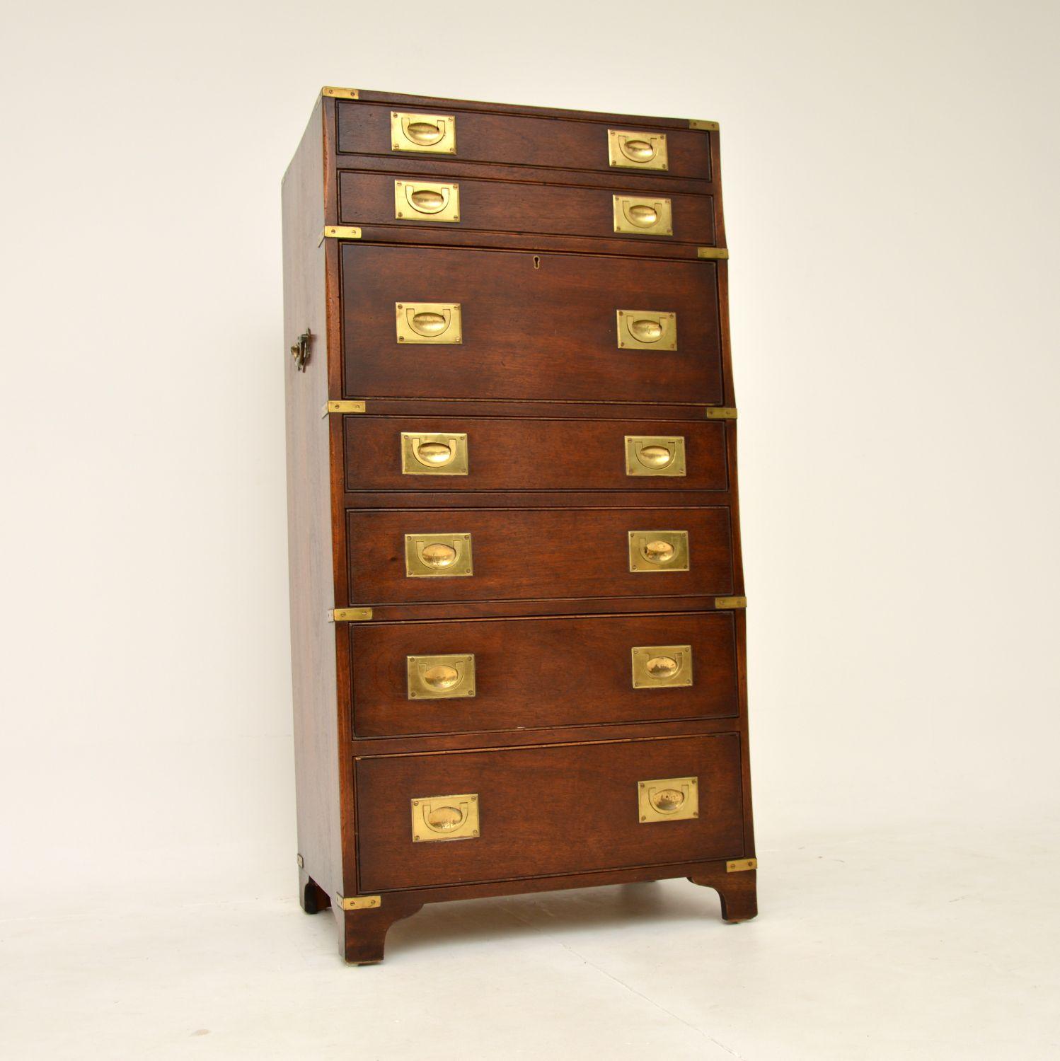 Antique Mahogany Military Campaign Secretaire Chest of Drawers (1 of 2)