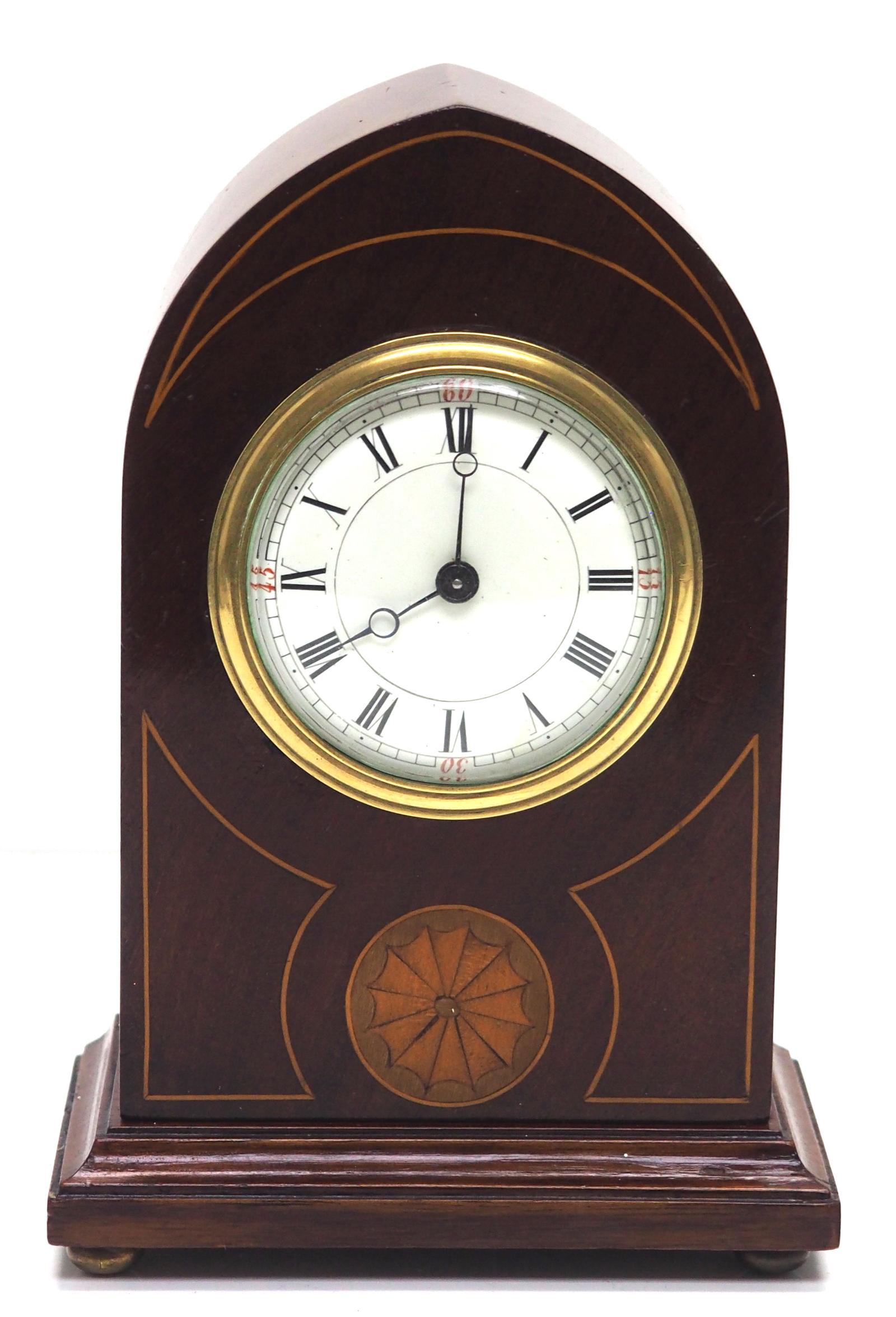 Antique Mahogany Miniature French Inlay Lancet Mantle Clock (1 of 10)