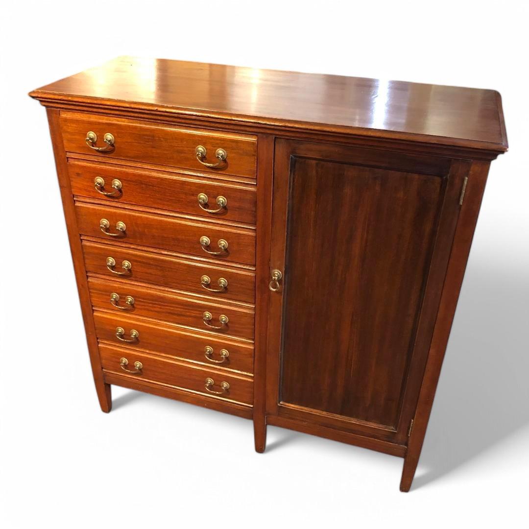 Antique Mahogany Music Cabinet with Cupboard and Drawers