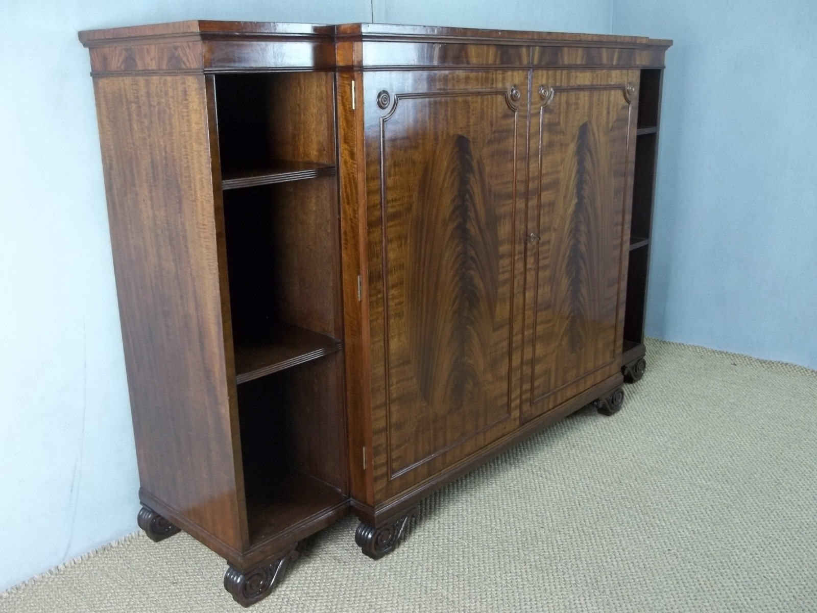 Antique Mahogany Open Breakfront Bookcase of Regency Hepplewhite Design c.1910