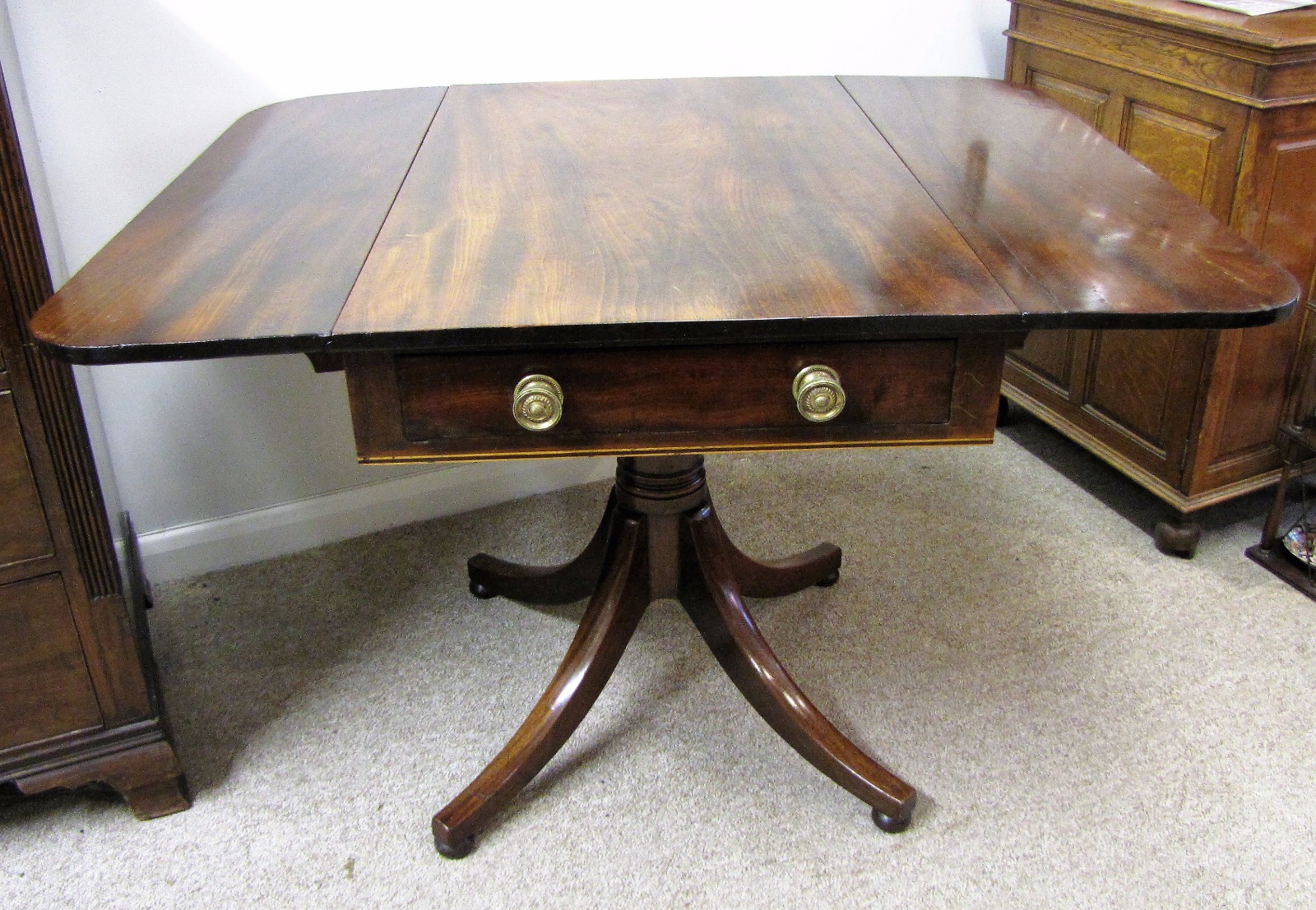 Antique Mahogany Pedestal Pembroke Drop Leaf Table