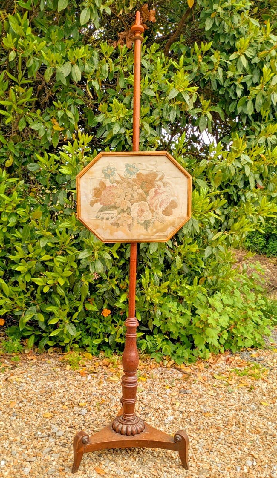 Antique Mahogany Pole Screen Silk Embroidery (1 of 4)