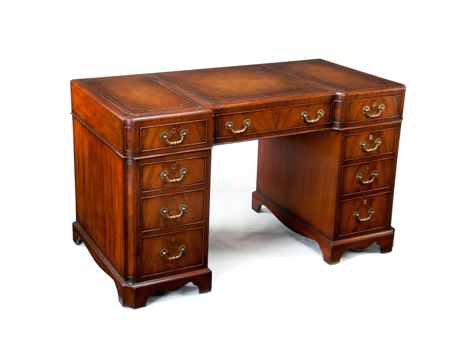 Antique Mahogany Shaped Front Pedestal Writing Desk (1 of 1)