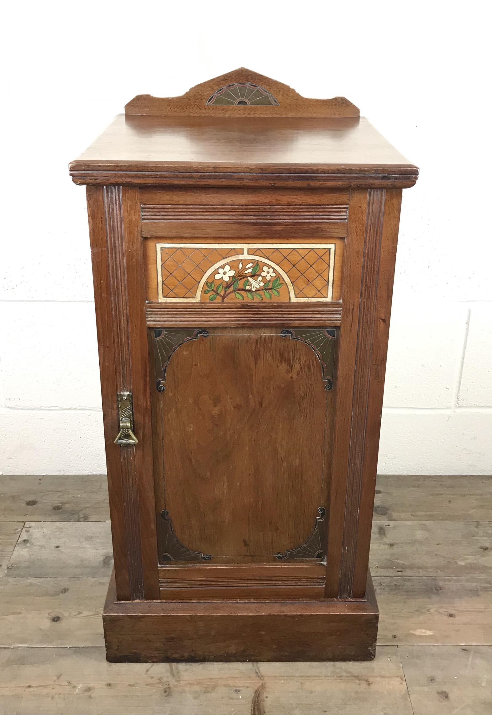 Antique Mahogany Single Door Cupboard with Painted Detail