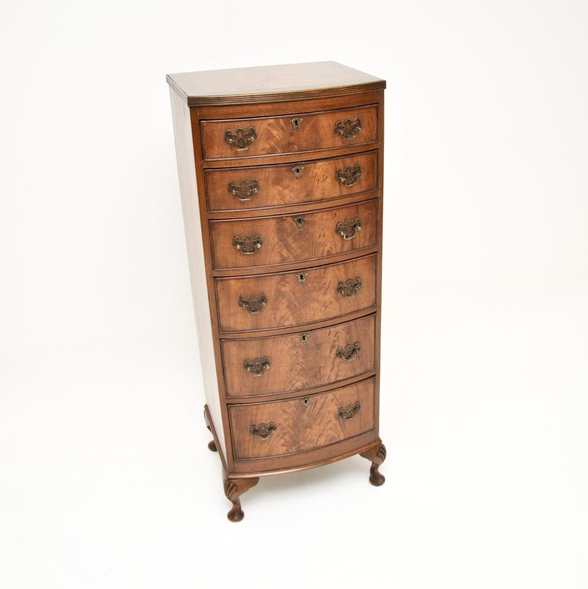 Antique Mahogany Slim Bow Front Chest of Drawers