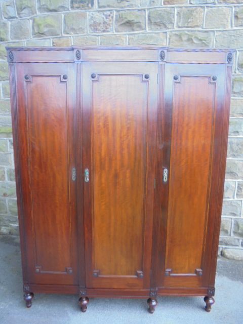 Antique Mahogany Triple Breakfront Wardrobe Armoire c.1900