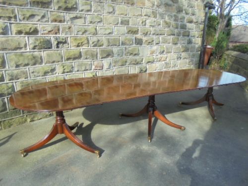 Antique Mahogany Triple Pillar Extending Dining Table 10-12 Seats c.1910