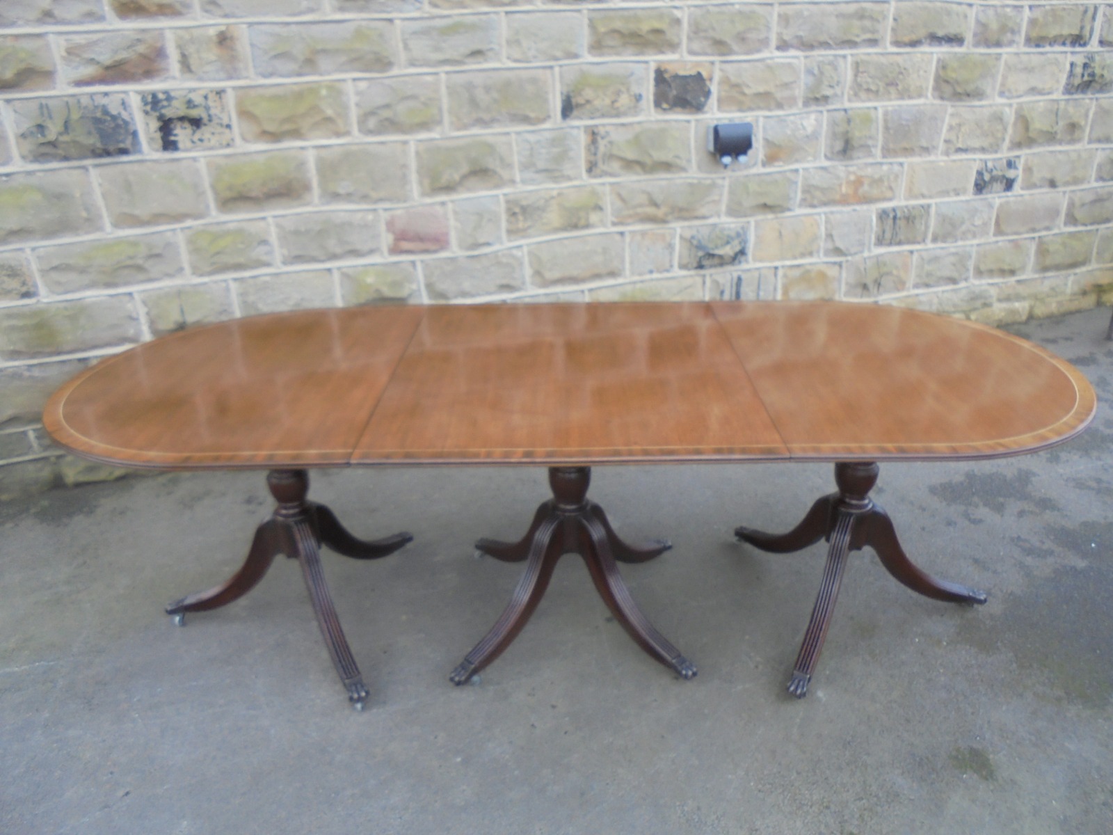 Antique Mahogany Triple Pillar Extending Dining Table (1 of 1)