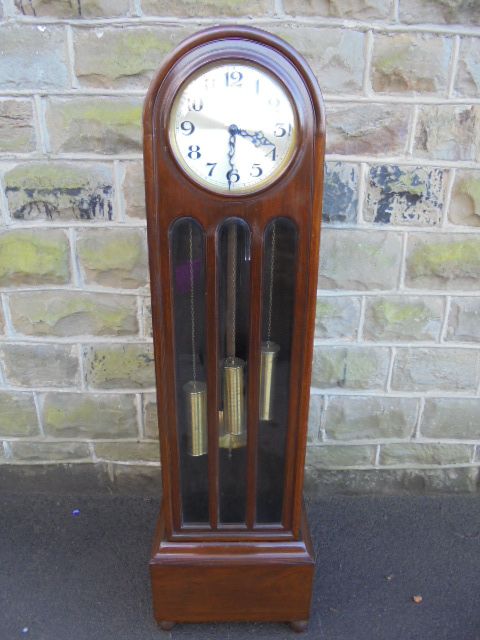 Antique Mahogany Triple Weight Granddaughter Clock, Gomersall of Blackpool