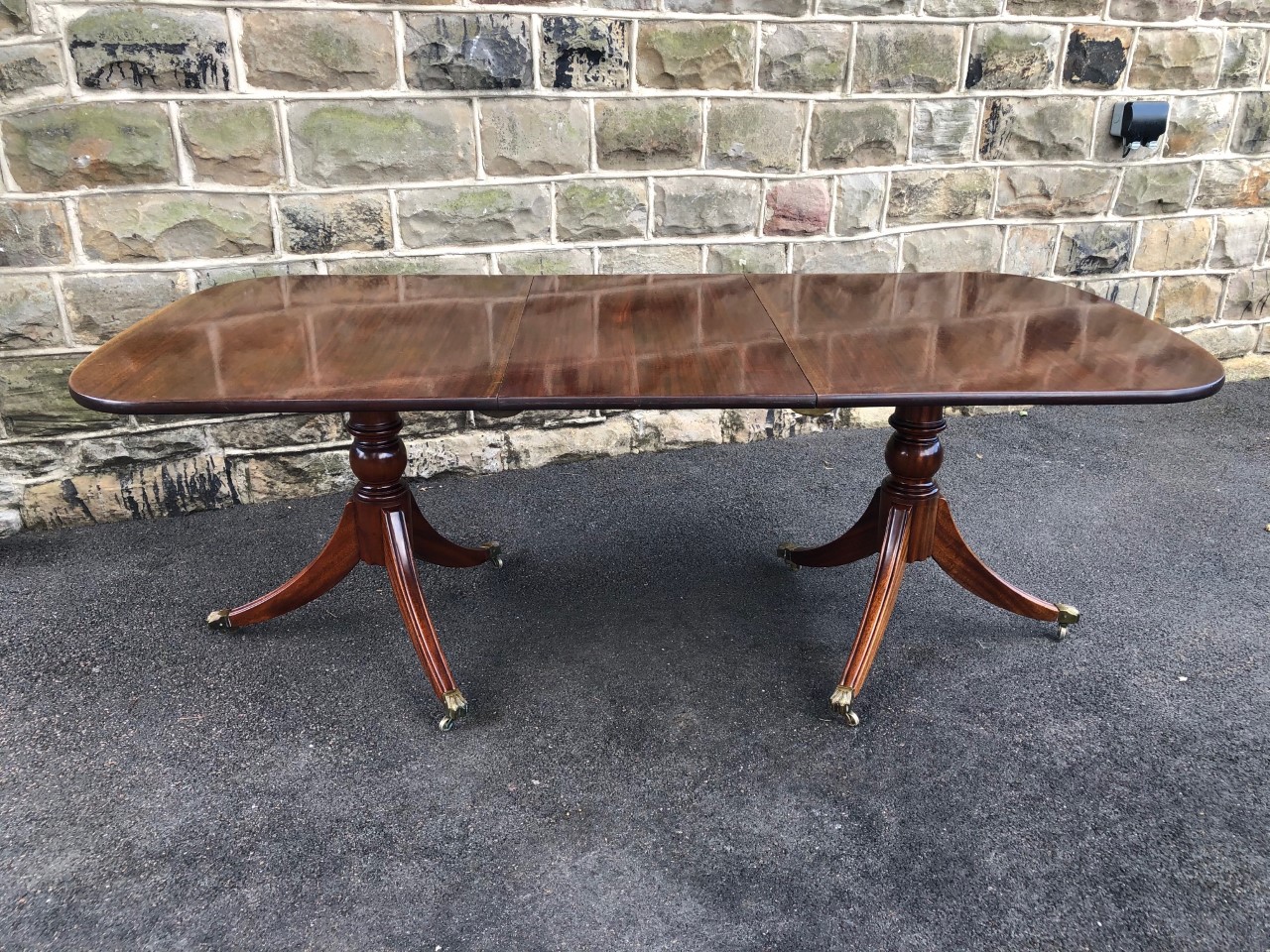 Antique Mahogany Twin Pillar Extending Dining Table