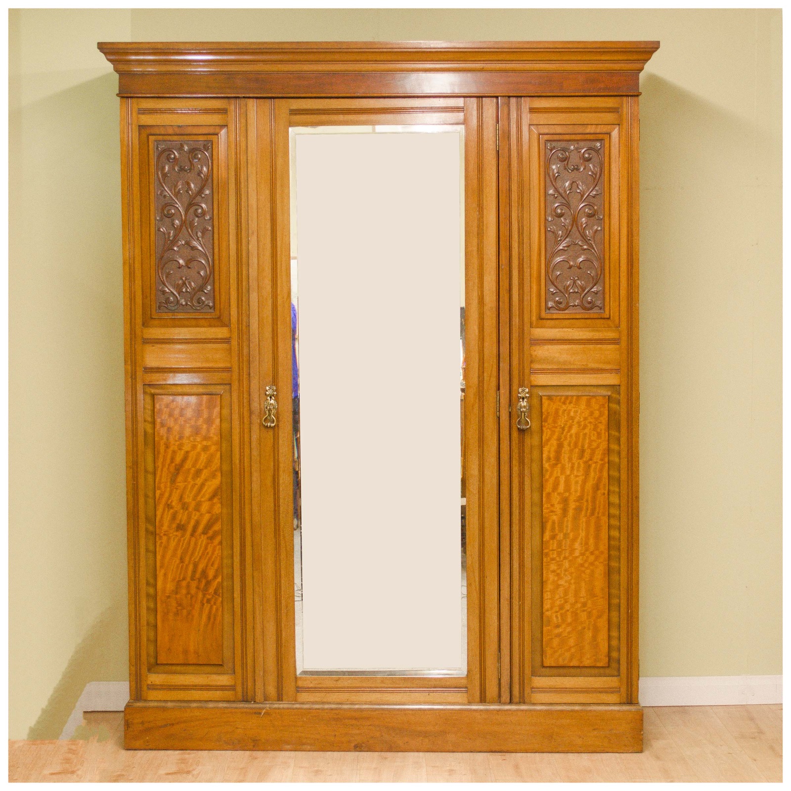 Antique Mahogany Victorian Mirror Door Wardrobe