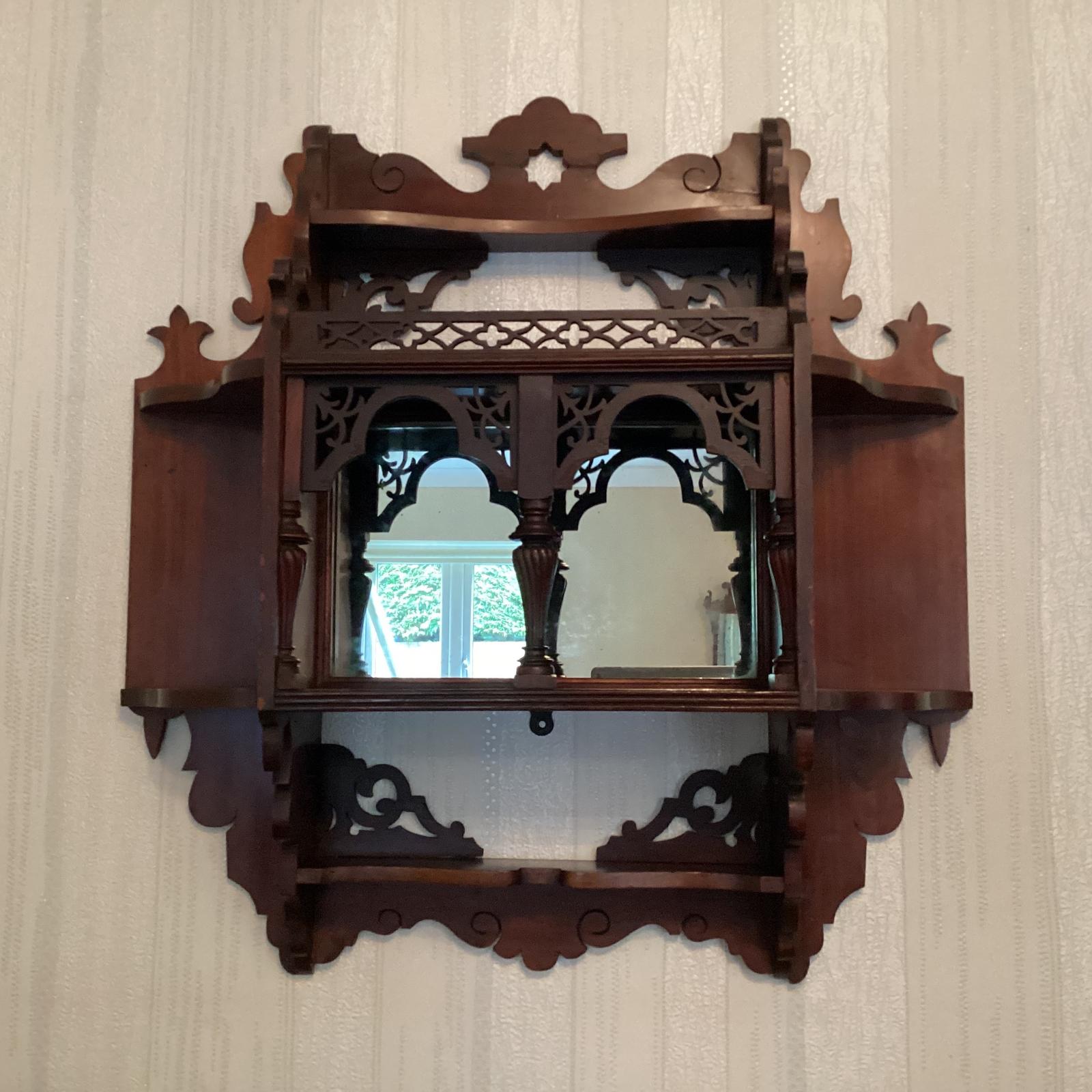 Antique Mahogany Wall Shelves with Fretwork Mirrored Back (1 of 8)