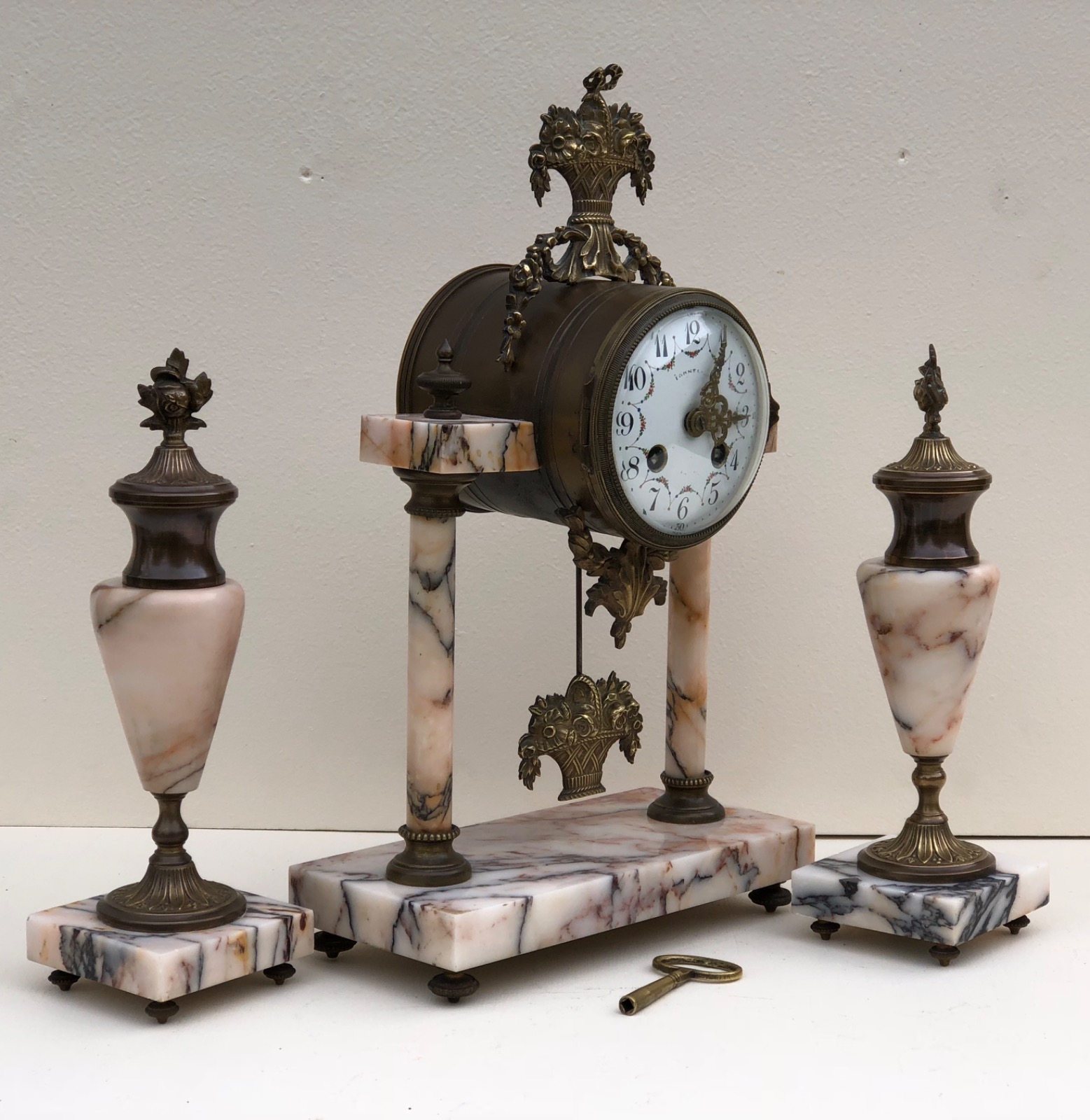 Antique Mantle Clock French Marble Garniture Clock Set with Urns