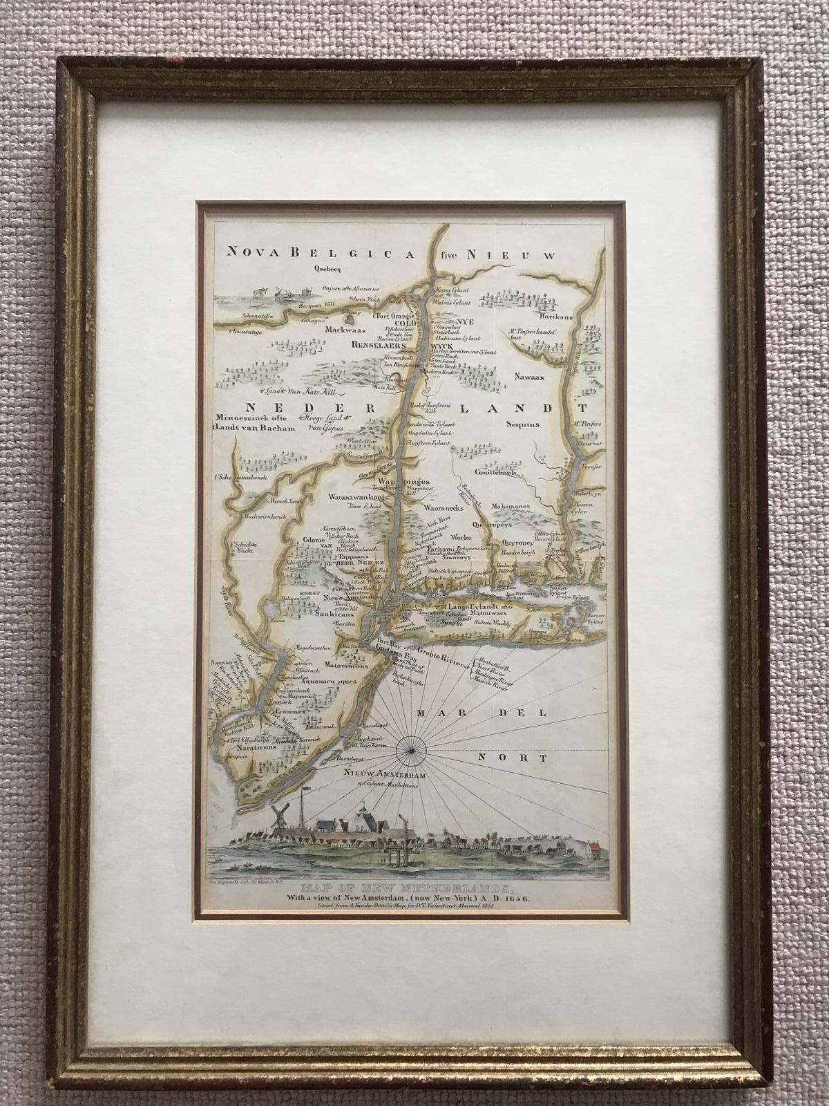 Antique Map of New Netherlands, with View of New Amsterdam (New York) Ad1656, Published by George Hayward in 1852