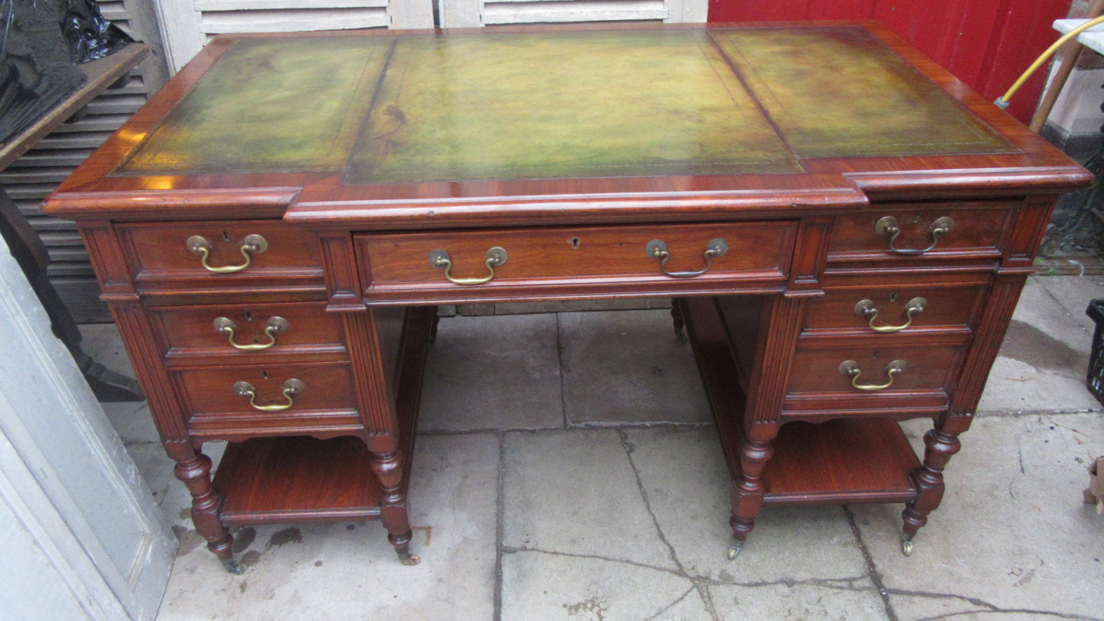 Antique Maples Edwardian Mahogany Breakfront Desk