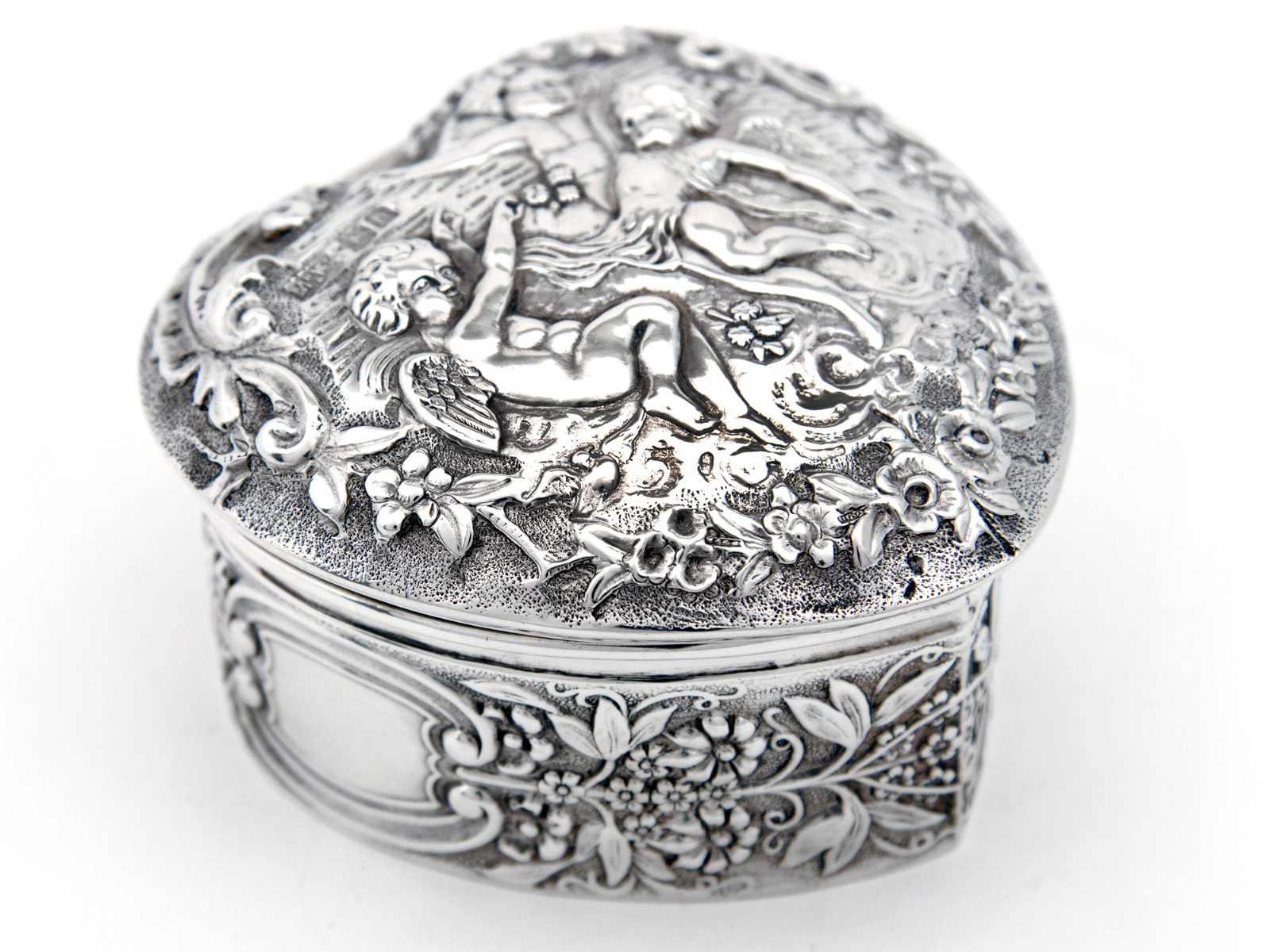 Antique Mappin & Webb Heart Shaped Silver Trinket Box