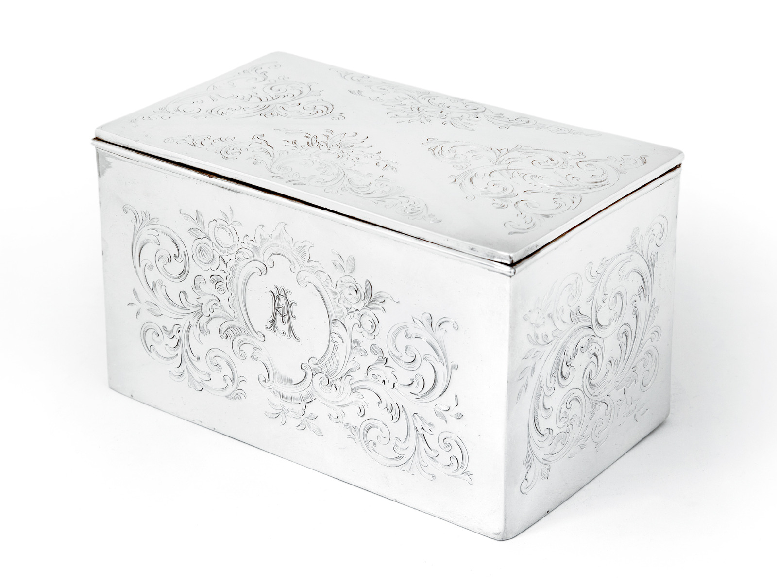 Antique Mappin & Webb Silver Plated Box with Floral and Scroll Engraving