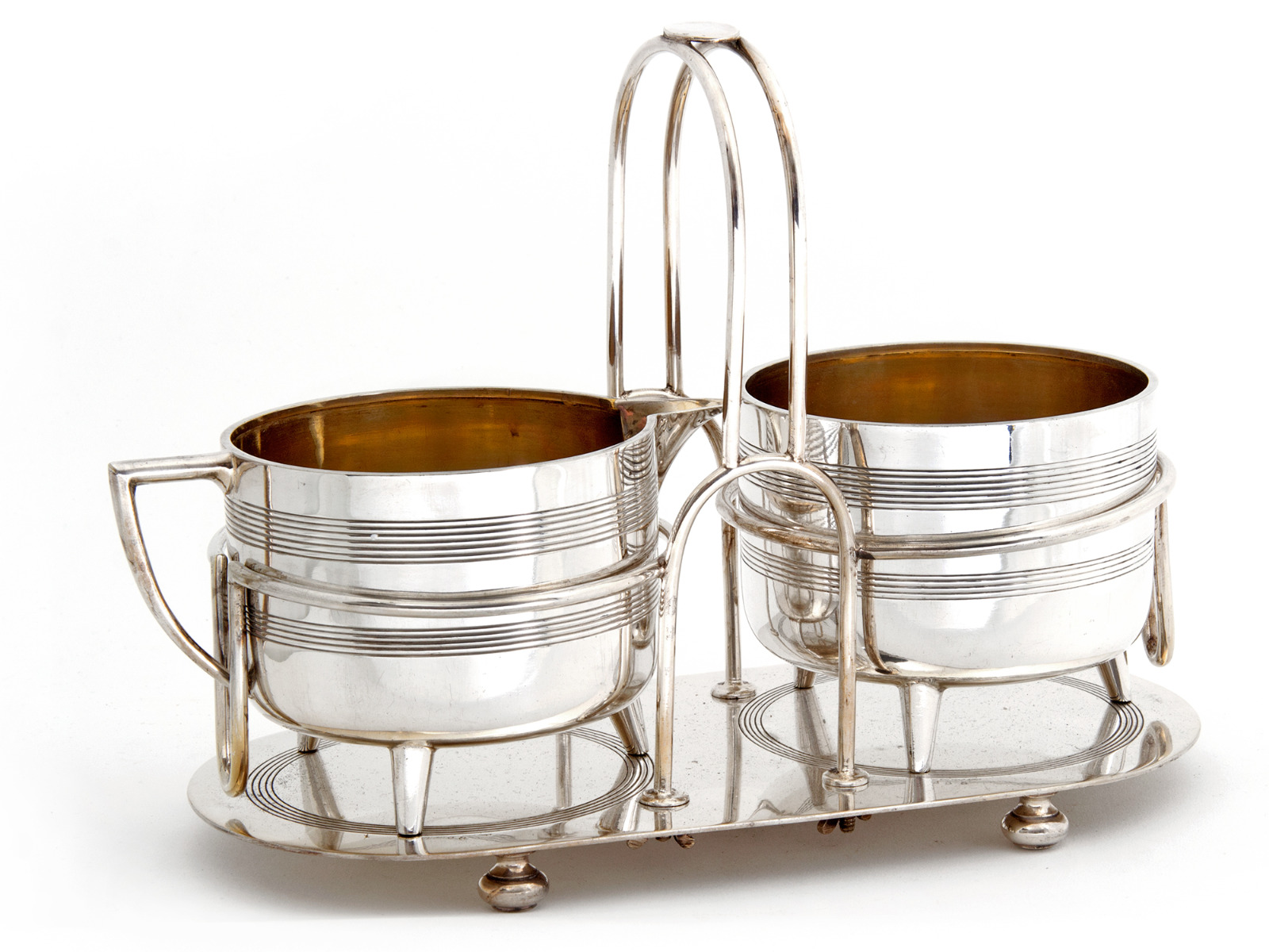 Antique Mappin & Webb Silver Plated Sugar & Cream On a Looped Handle Base (1 of 1)