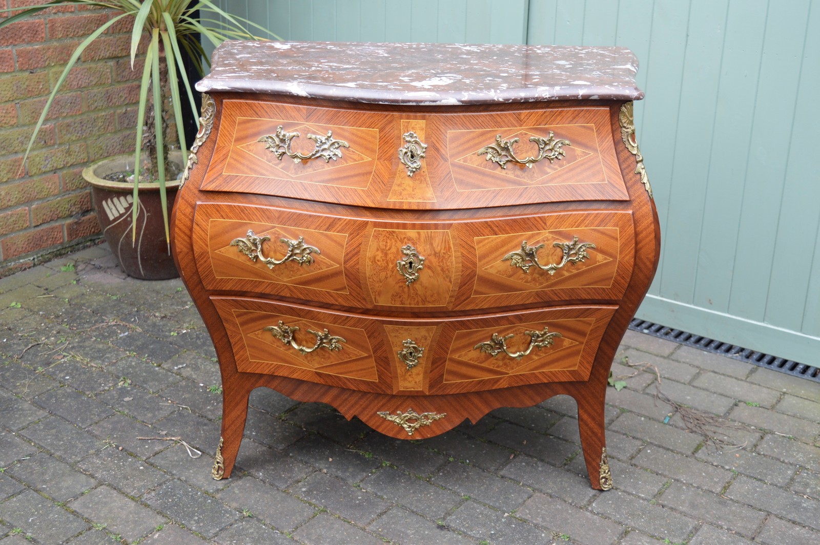 Antique Marble Top Bombe Commode Chest of Drawers Bow Front c.1910 (1 of 1)