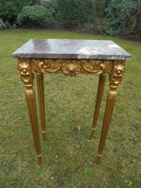 Antique Marble Top & Gilt Wood Console Table / Side Table