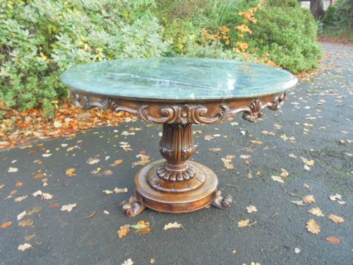 Antique Marble Top Mahogany Centre Table / Dining Table