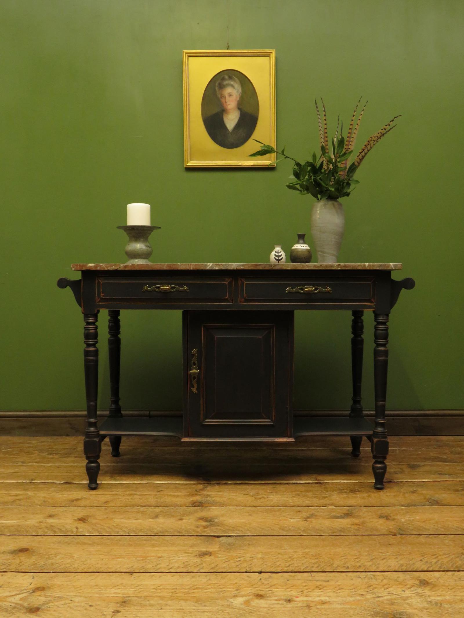 Antique Marble Topped Black Painted Washstand, Adaptable Bathroom Sink Unit