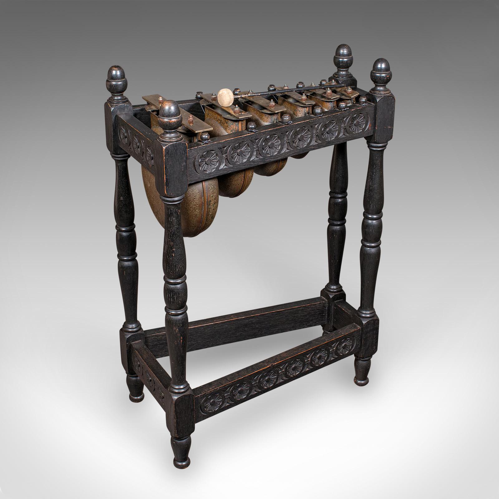 Antique Marimbaphone, English Brass, Oak, Musical Instrument, Glockenspiel c.1920