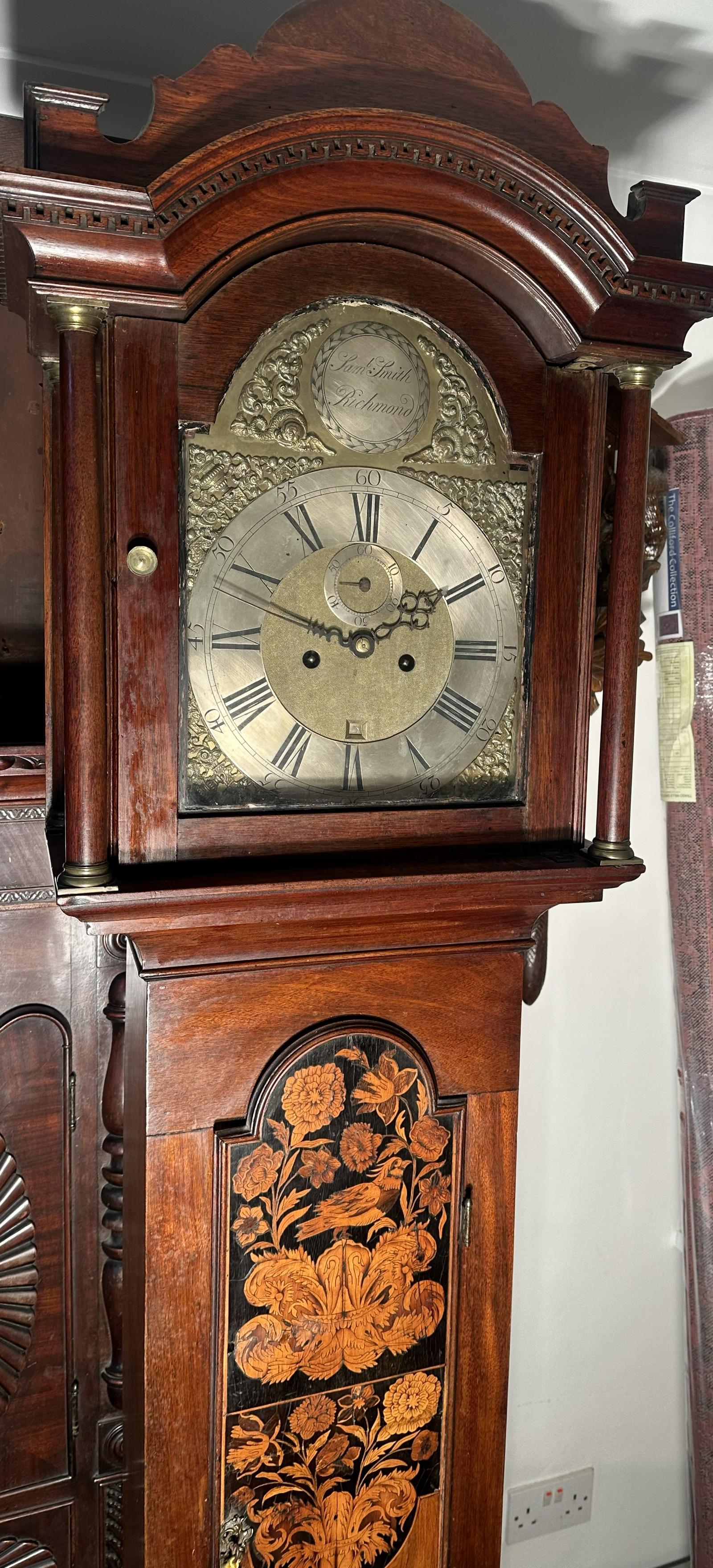 This Antique Marquetry "Sam Smith of Richmond" Longcase Clock is located in Cornwall, United Kingdom
