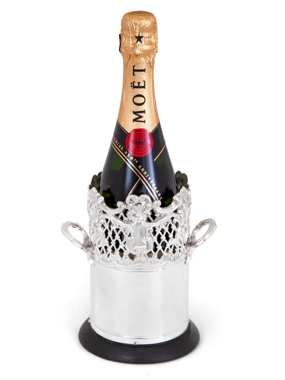 Antique Martin Hall Silver Plated Bottle Stand with Ebonised Wood Base