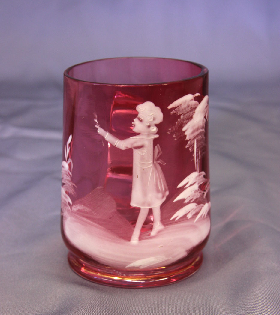Antique Mary Gregory Cranberry Glass Tankard / Mug / Cup (1 of 7)