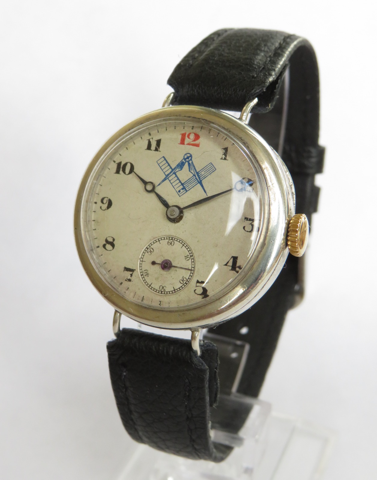 Antique Masonic Silver Marvin Trench Watch, 1915