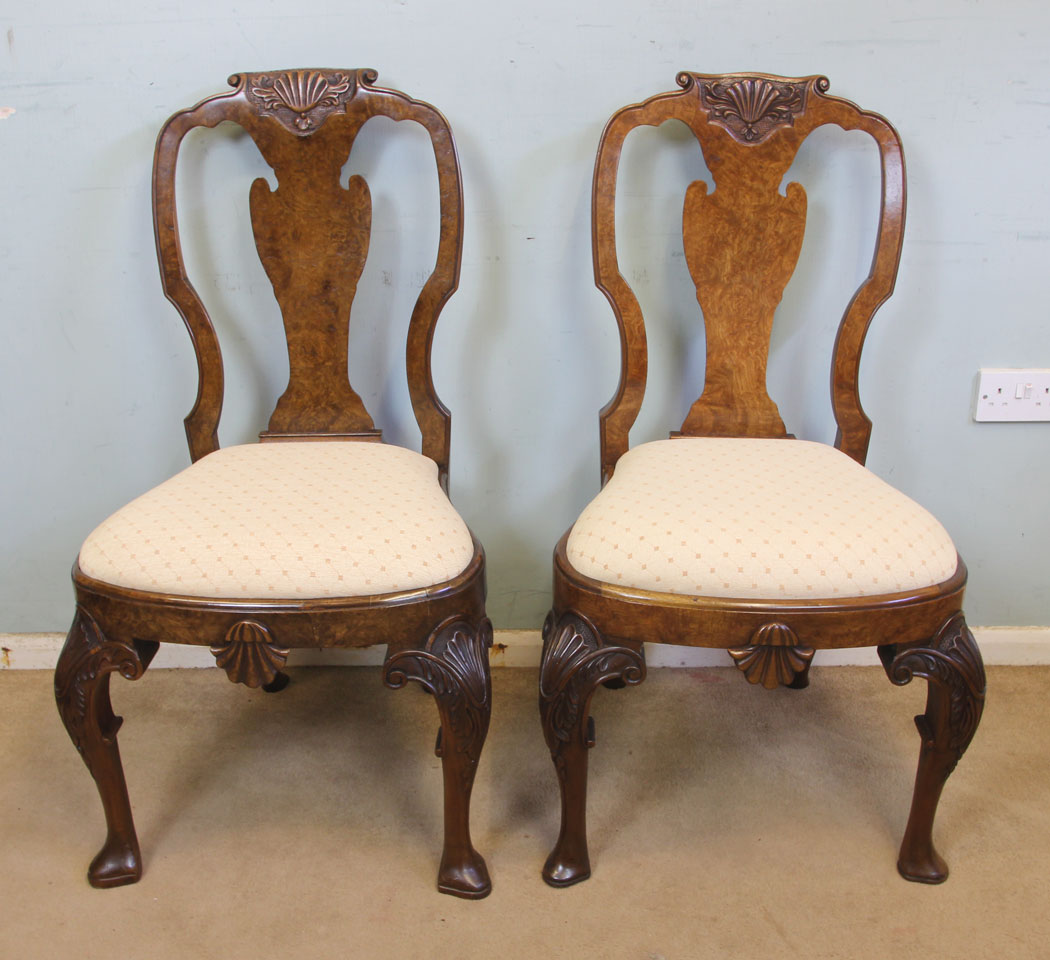 Antique Matched Pair of Burr Walnut Side Chairs (1 of 1)