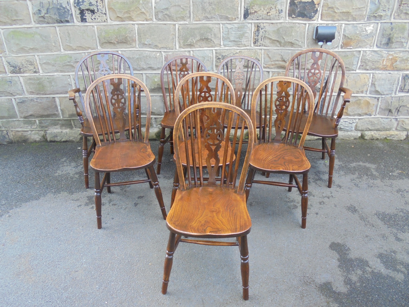 Antique Matched Set of 8 Ash & Elm Wheel Back Kitchen Chairs
