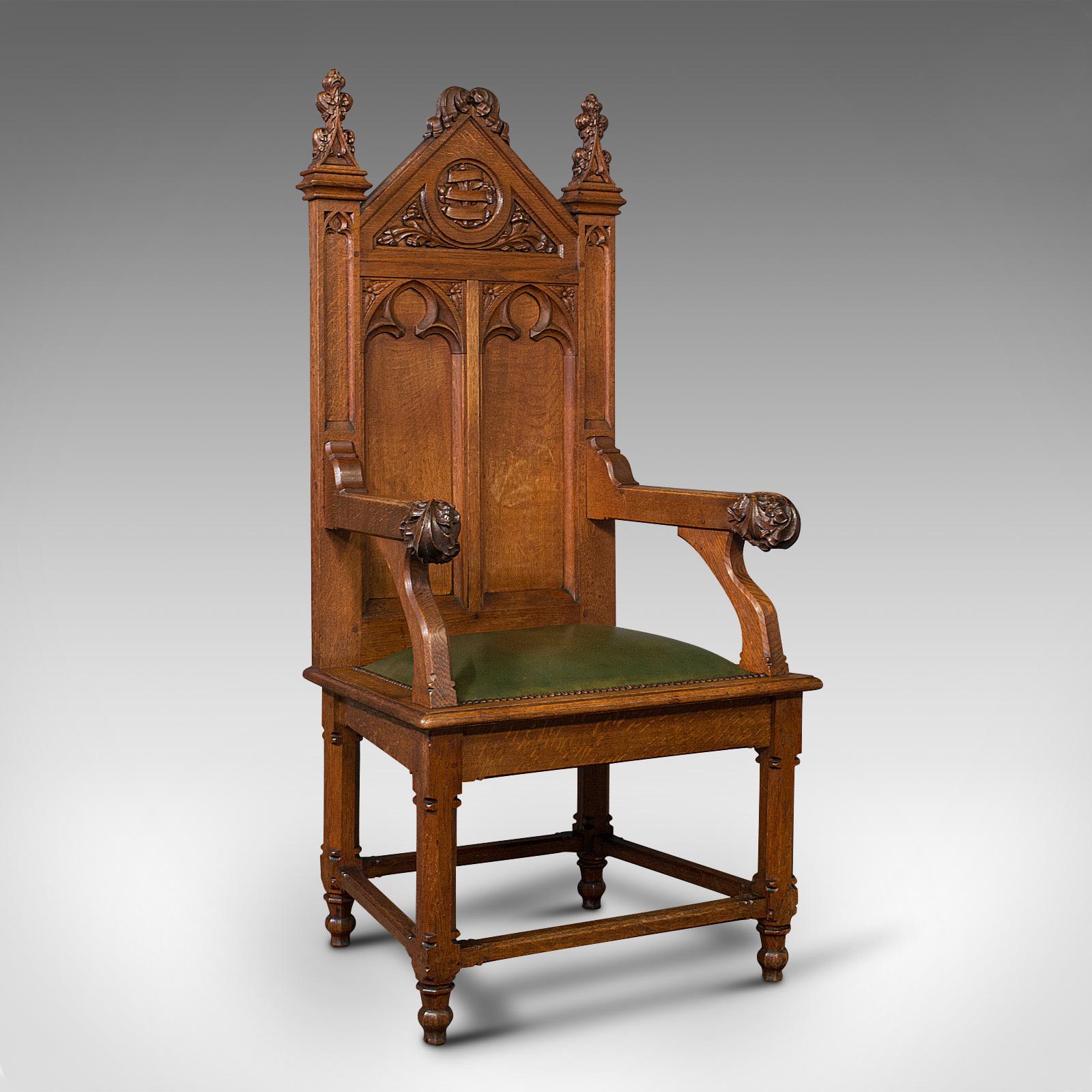 Antique Mayoral Chair, English, Ecclesiastic Armchair, Gothic Revival, Victorian