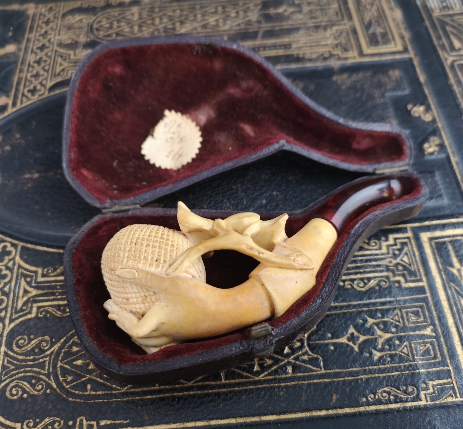 Antique Meerschaum & Amber Pipe, Hand & Flower