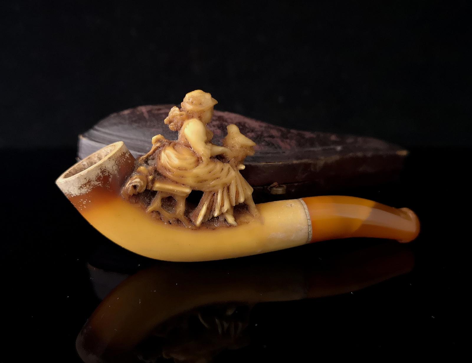 Antique Meerschaum and Amber pipe, Lady and Partridge