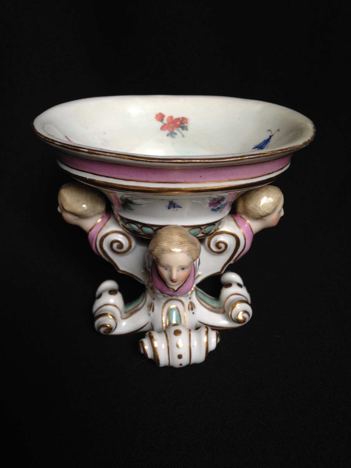 Antique Meissen Porcelain Hand-Painted Pedestal Bon Bon Dish Bowl, Mid 19th Century