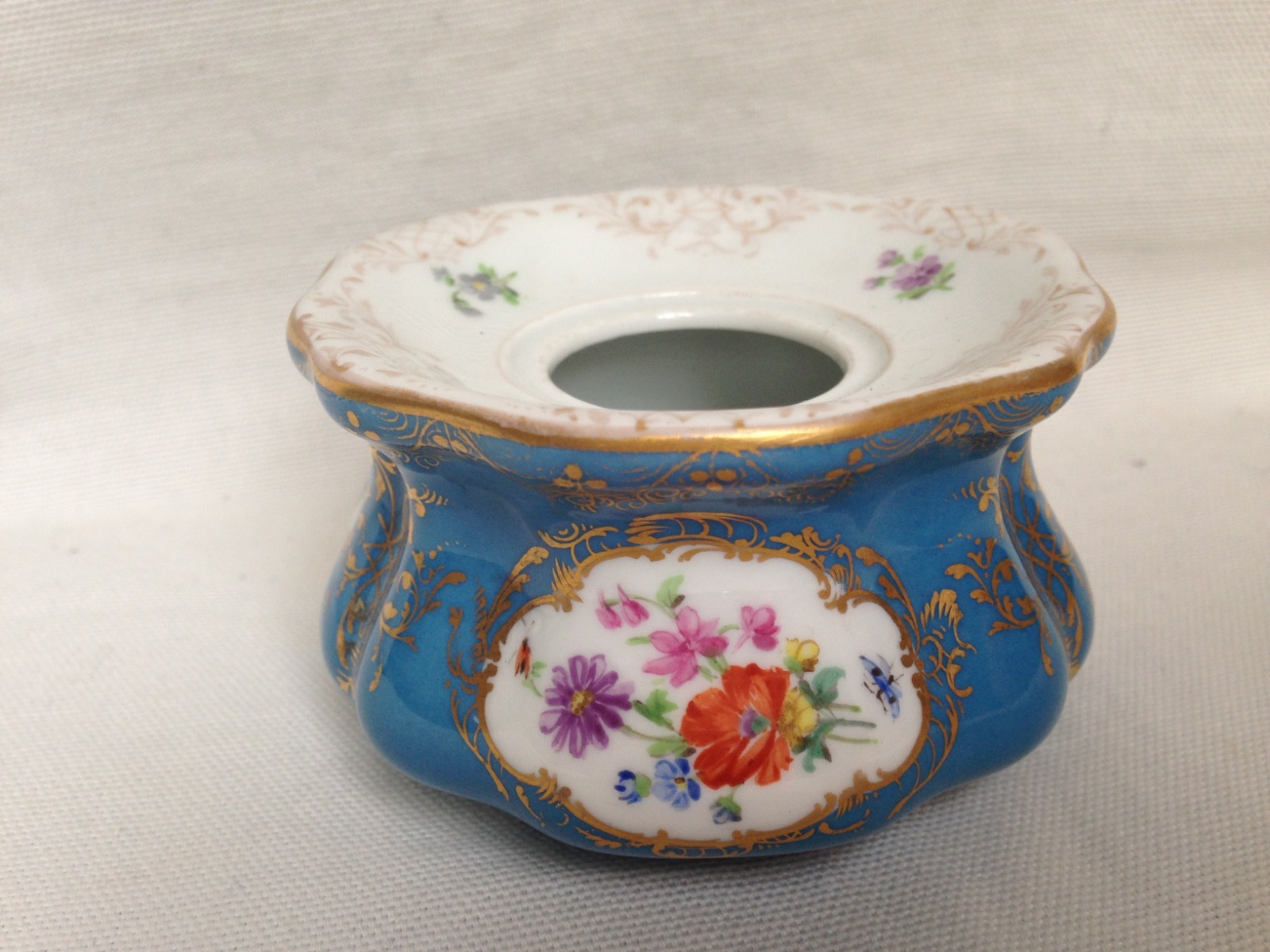Antique Meissen Porcelain Inkwell Handpainted Signed Late 19th Century