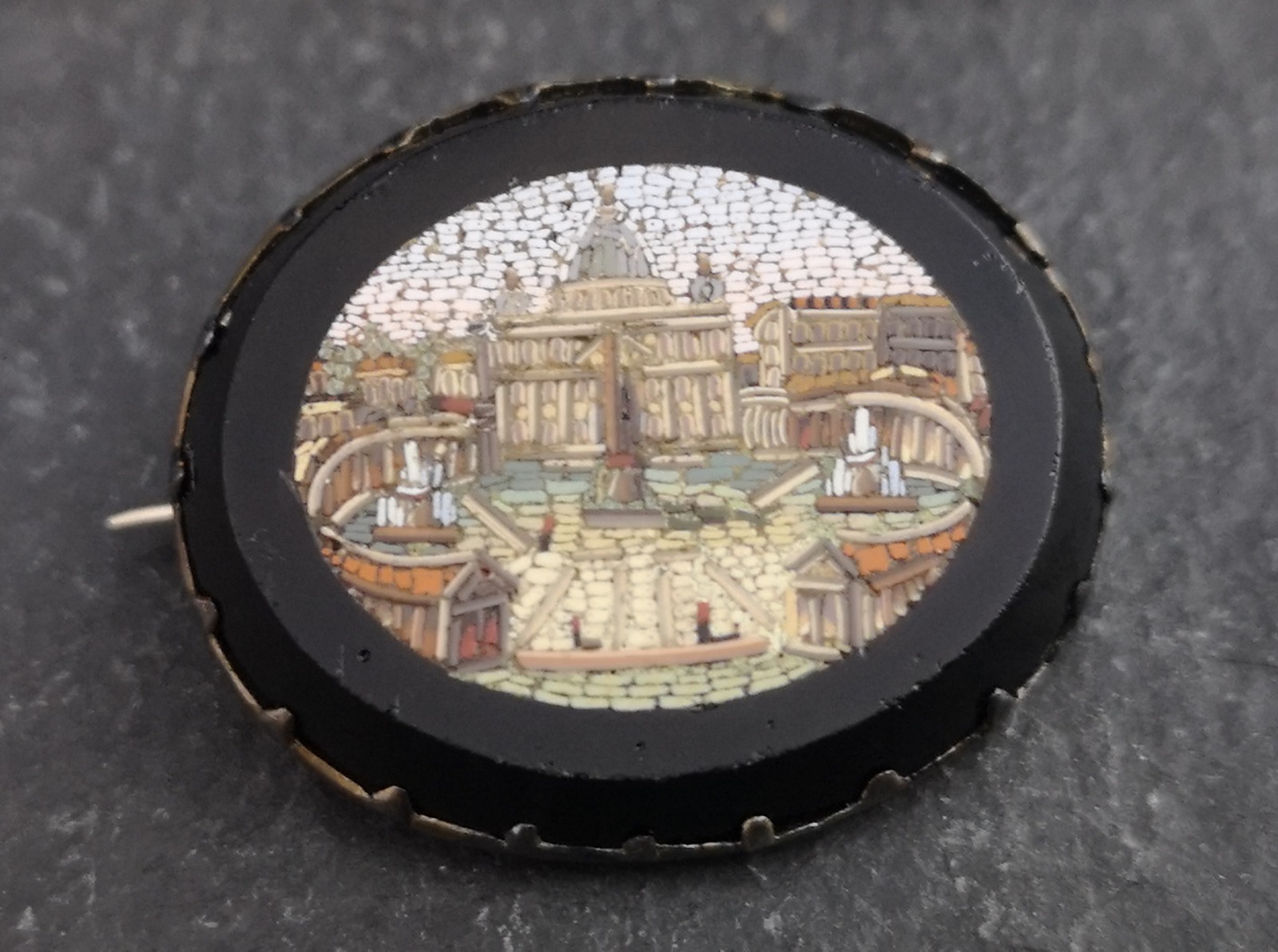 Antique Micro Mosaic Brooch, Onyx, the Vatican