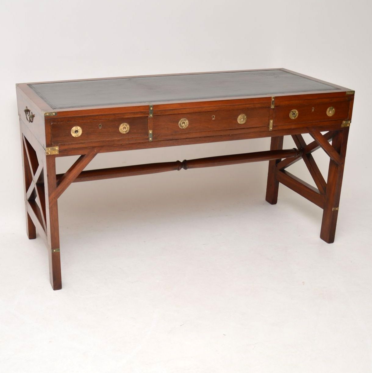 Antique Military Campaign Style Mahogany Leather Top Desk