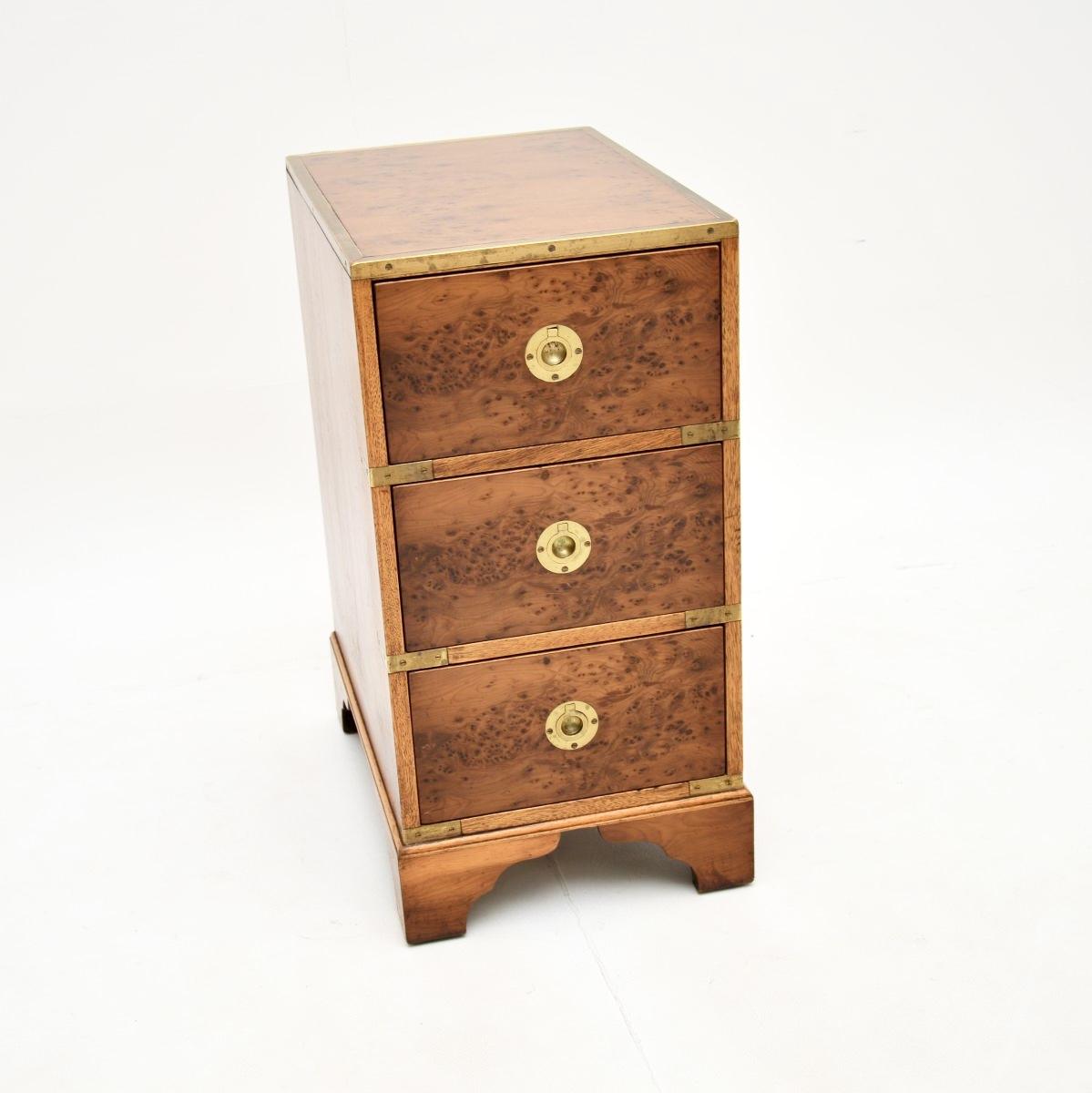 Antique Military Campaign Style Yew Wood Bedside Chest