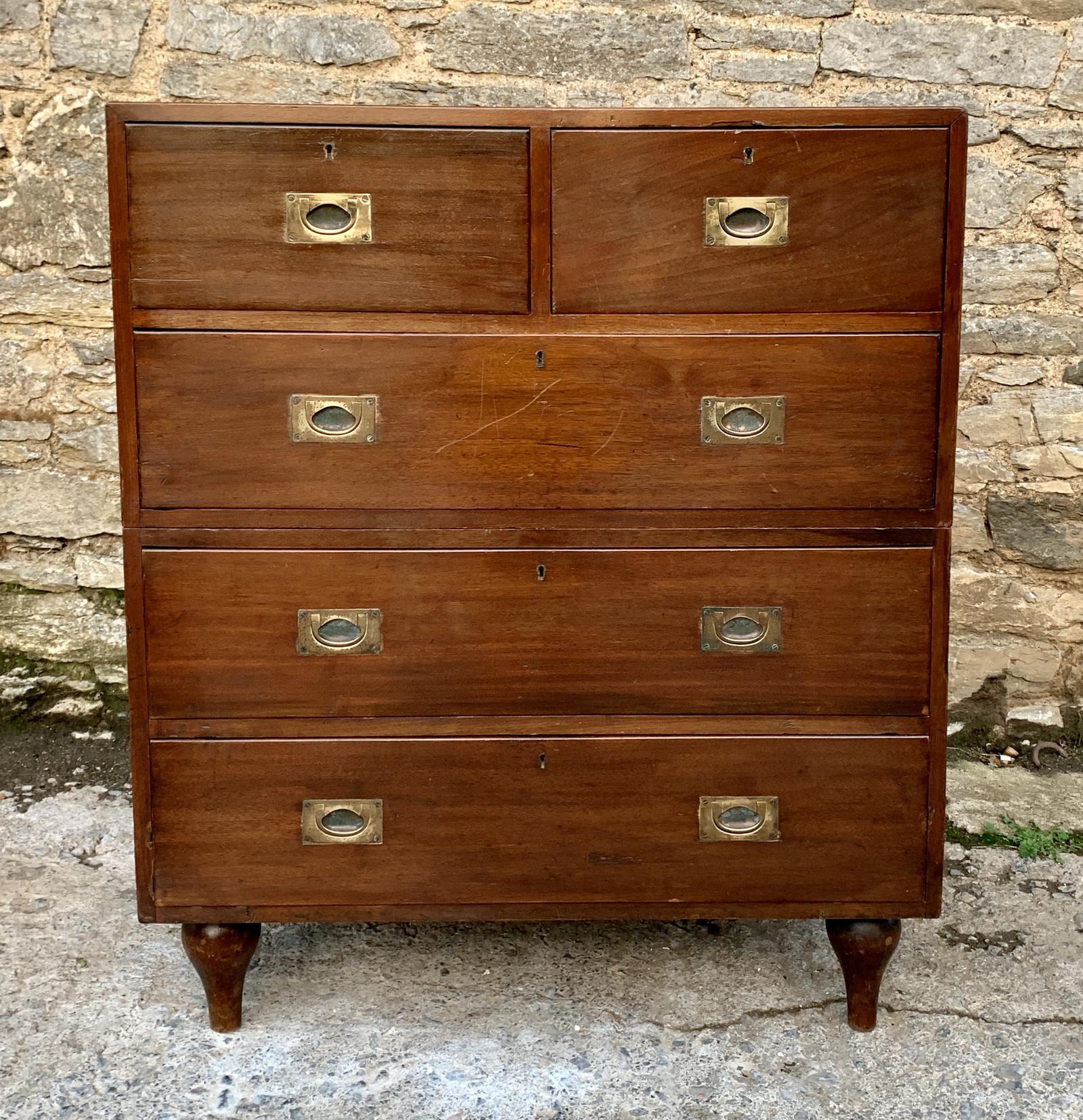 Antique Military Campaign Teak Chest of Drawers