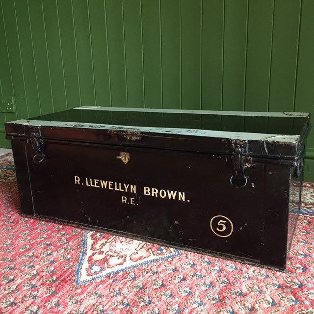 Antique Military Metal Trunk Old WW1 Colonial Campaign Chest Vintage Industrial Footlocker