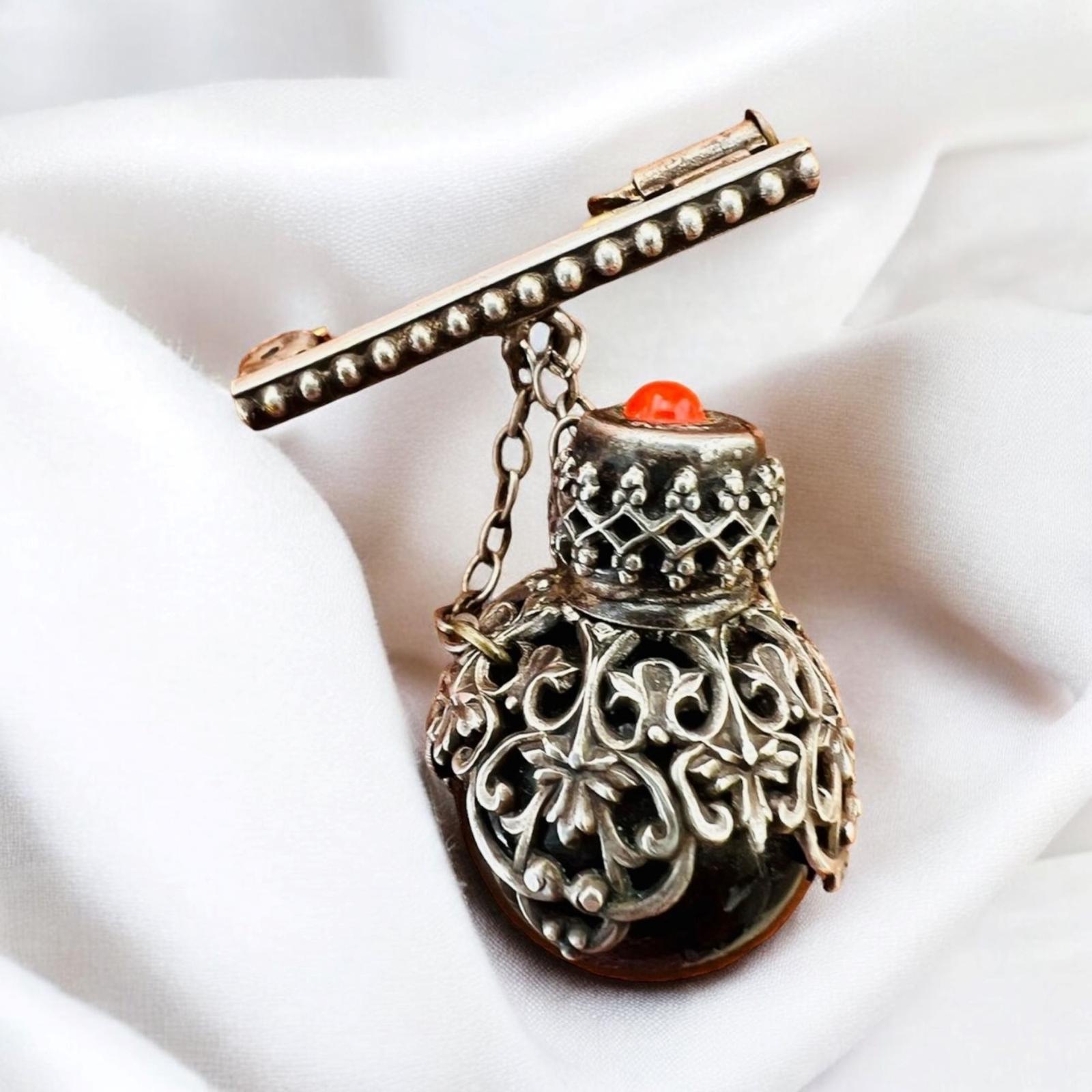Antique Miniature Pendant Perfume Scent Bottle Brooch / Pin Circa 1900