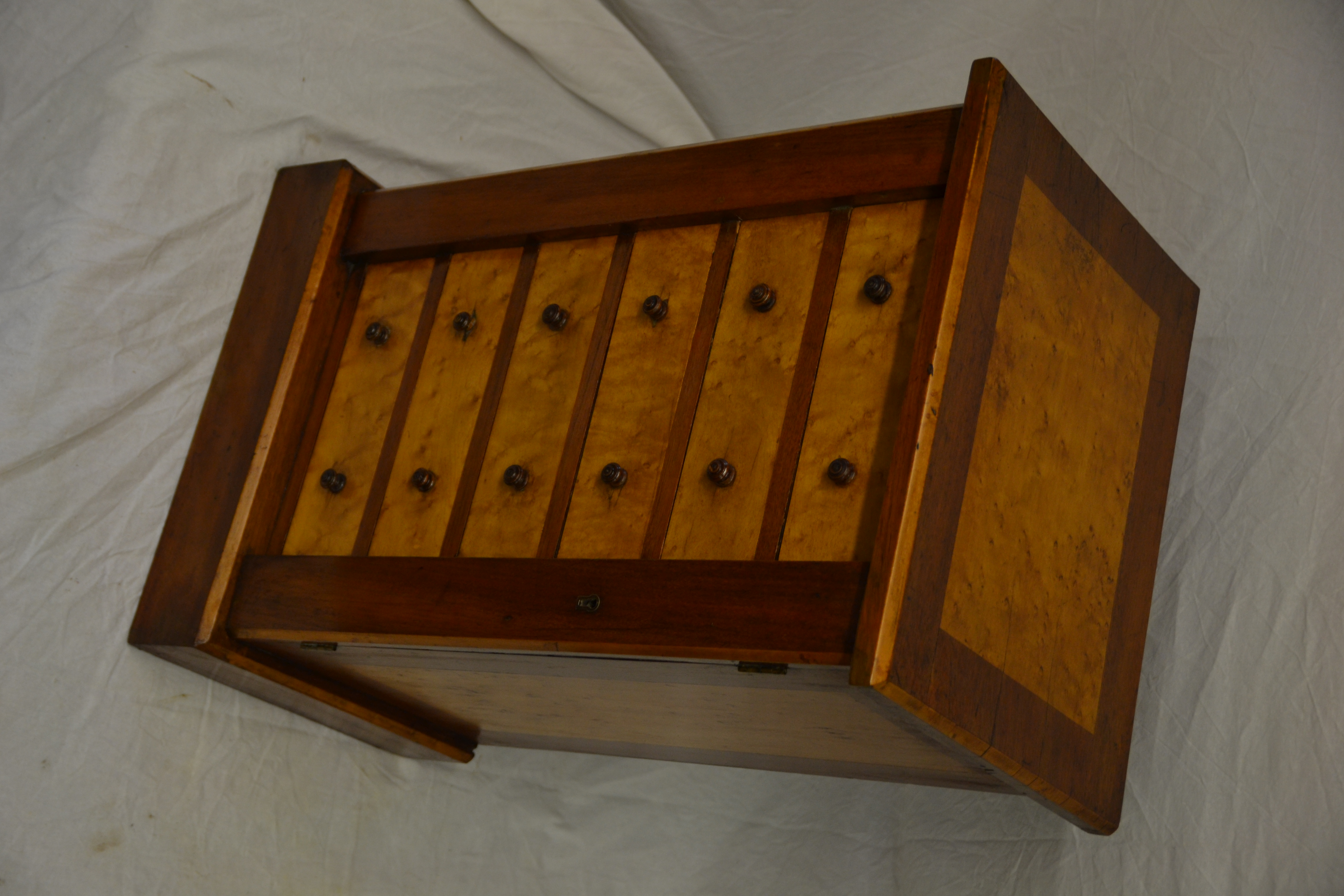 Antique Miniature Wellington Chest of Drawers, Birds Eye Maple & Walnut