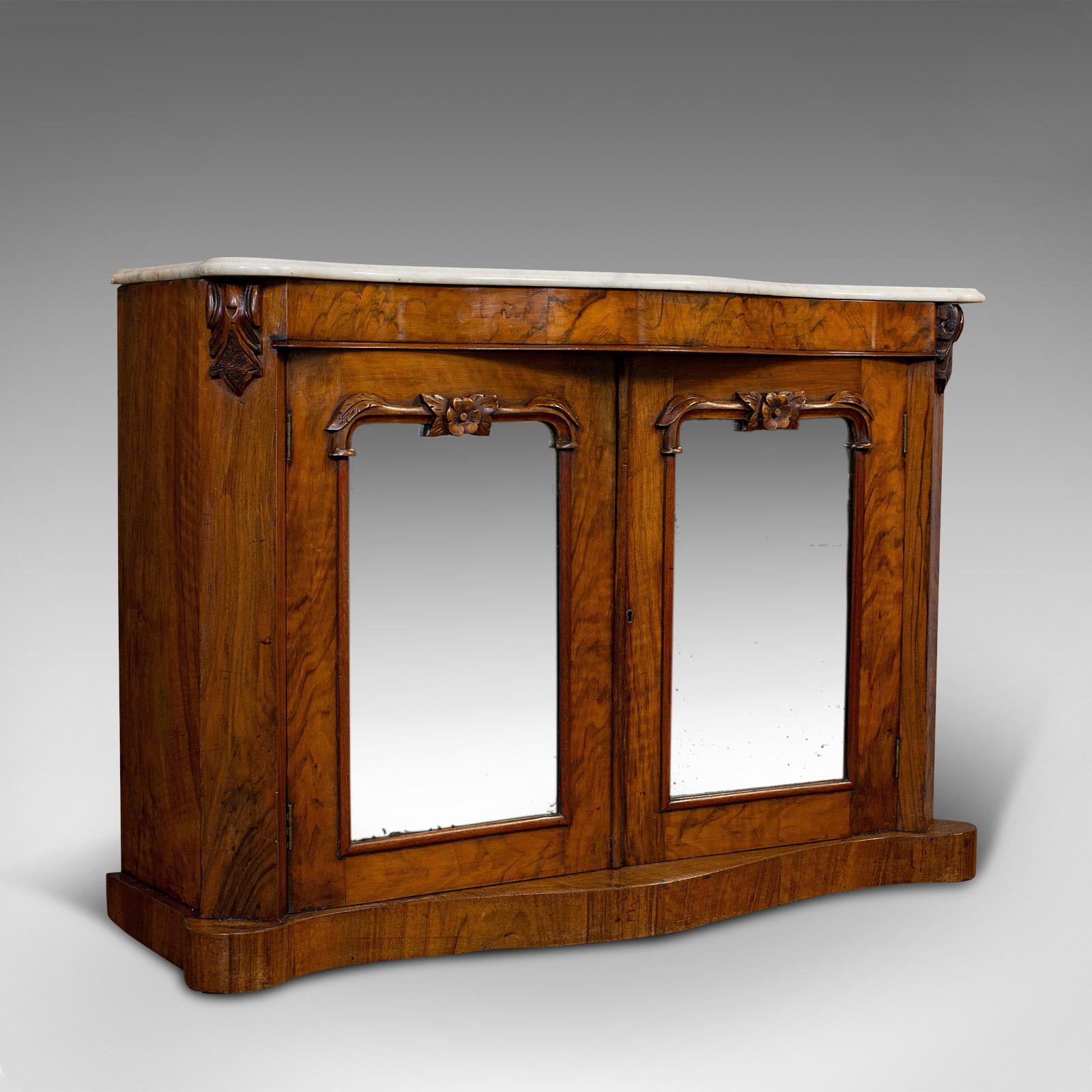 Antique Mirrored Side Cabinet, English, Walnut, Marble, Dresser, Victorian, 1850