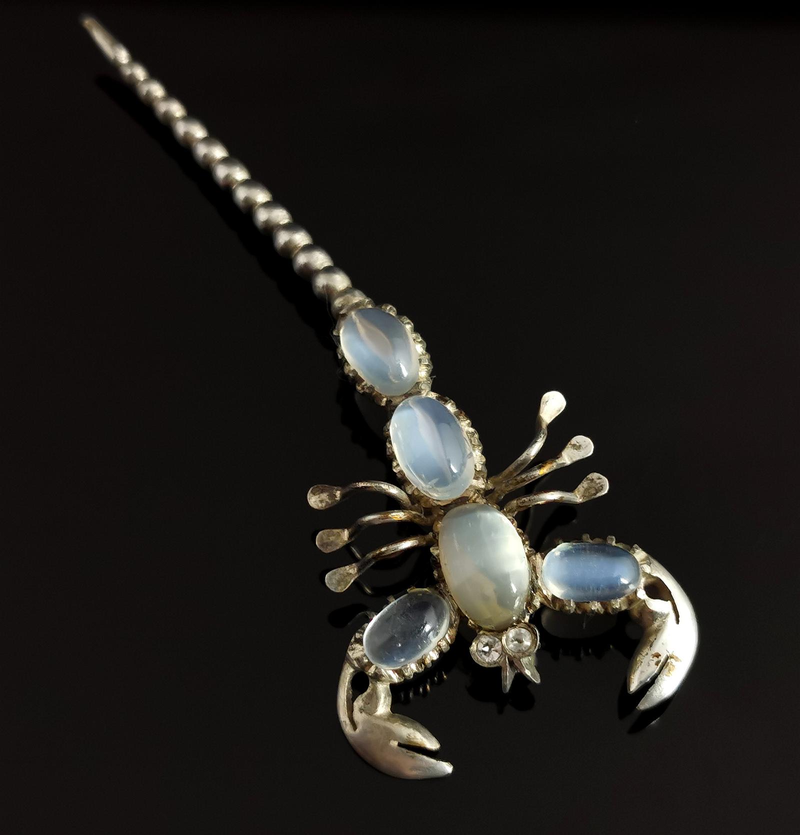 Antique Moonstone Scorpion Brooch, Sterling Silver