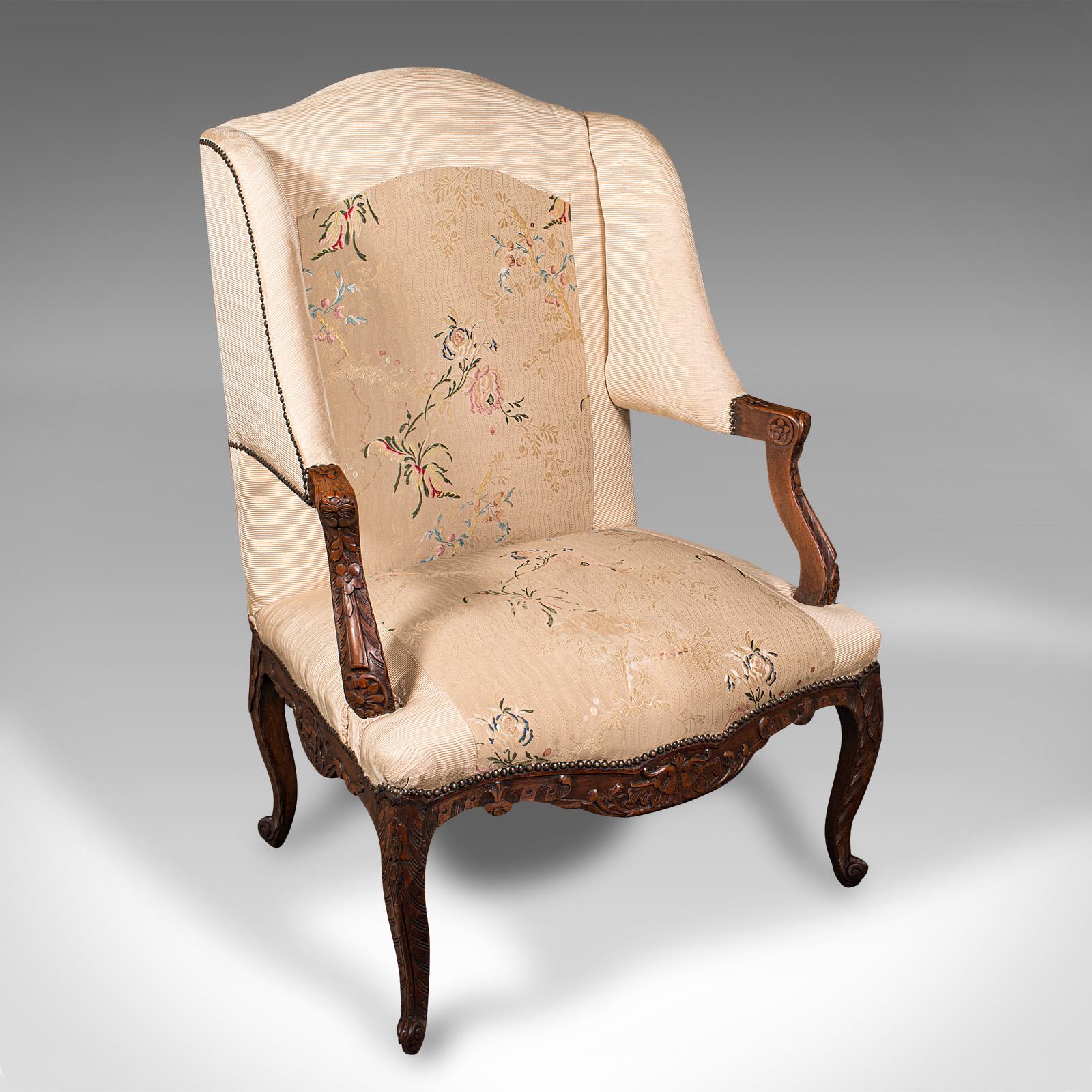 Antique Morning Room Chair, French Beech, Textile, Wing Back Armchair c.1850