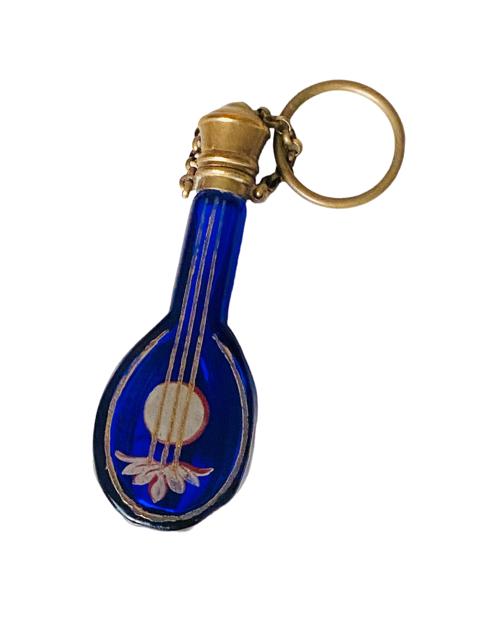 Antique Moser Bristol Blue Glass & Gilt Mandolin Form Chatelaine Perfume Scent Bottle c.1880