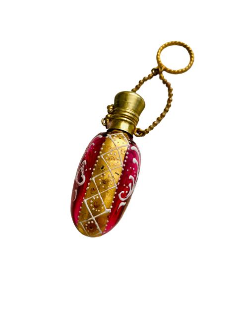 Antique Moser Enamel & Gilt Cranberry Glass Chatelaine Perfume Scent Bottle c.1880